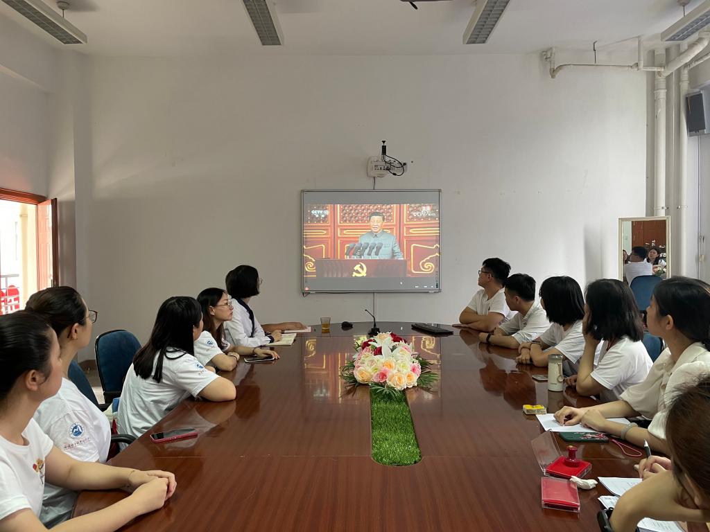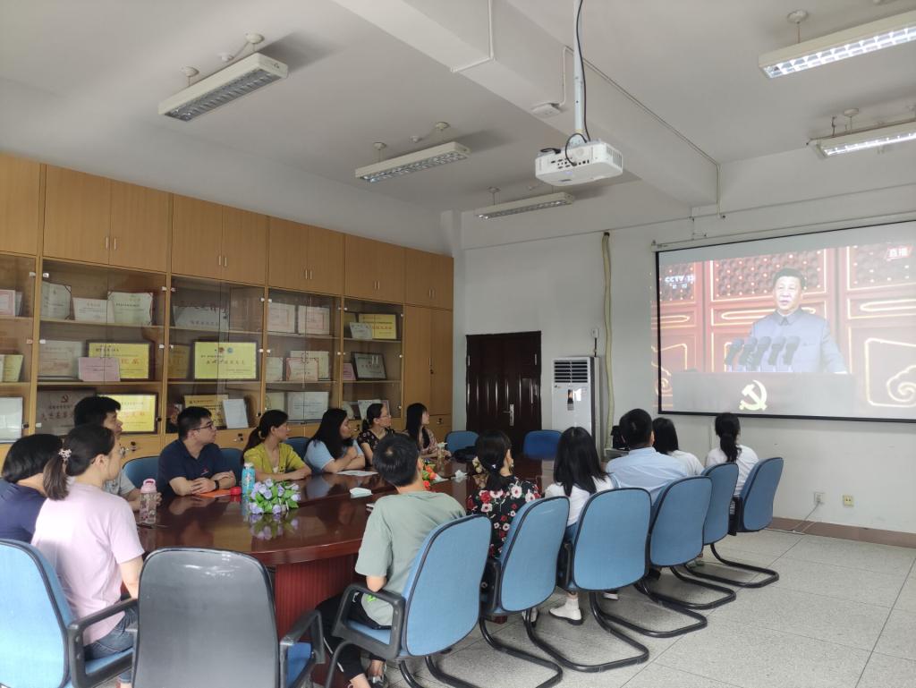 校領導班子成員、各黨總支(直屬黨支部)書記、各二級院(系、部)主任(含主持工作副主任)、機關黨總支全體黨員、機關各處室非黨員的副科級及以上干部等100余人在行政樓六樓會議室集體收看慶祝中國共產(chǎn)黨成立100周年大會直播。各二級院(系、部)、離退休黨總支分別組織師生觀看慶祝大會直播。