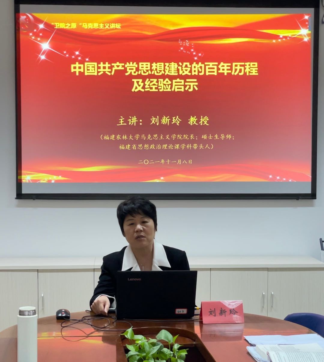 為貫徹落實(shí)習(xí)近平總書記“七一”重要講話精神,深入學(xué)習(xí)百年黨史,從黨的百年奮斗歷程中感悟思想偉力,2021年11月8日,我校特邀福建省思想政治理論課學(xué)科帶頭人、福建農(nóng)林大學(xué)馬克思主義學(xué)院院長(zhǎng)劉新玲教授在行政樓107會(huì)議室作題為《中國(guó)共產(chǎn)黨思想建設(shè)的百年歷程及歷史經(jīng)驗(yàn)》的專題講座。講座由馬克思主義學(xué)院院長(zhǎng)熊美蘭主持,全體專兼職教師參加。