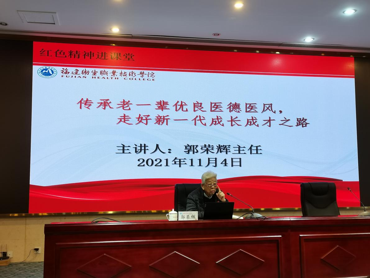 郭榮輝已年屆86歲高齡,他用自己64年忠守踐行黨員使命的人生履歷為師生帶來了生動的講座——《傳承老一輩優(yōu)良醫(yī)德醫(yī)風(fēng),走好新一代成長成才之路》。郭榮輝通過福建省附一醫(yī)院易自翔教授的從醫(yī)經(jīng)歷,向師生代表講述了這名曾榮獲國家科技進步獎二等獎的醫(yī)務(wù)工作者如何磨礪崇高的醫(yī)德和精湛的醫(yī)術(shù),寄語青年醫(yī)學(xué)生應(yīng)當(dāng)成為一名讓病人懷念的大醫(yī),成為一個有愛國情操、有感恩情懷、有仁愛之心的人。郭榮輝還分享了自己的學(xué)習(xí)、生活經(jīng)驗,囑托青年學(xué)子在大學(xué)期間還要爭當(dāng)學(xué)生干部,夯實人生的實踐基礎(chǔ),積累人生的技能經(jīng)驗。
