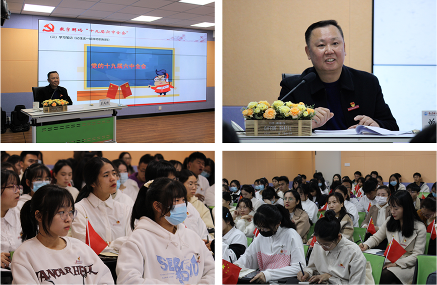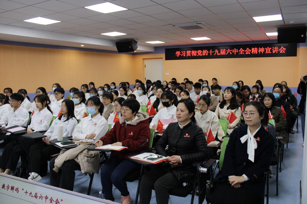 12月22日,校黨委書記曾武祈來到青年之家,以《以史為鑒 開創(chuàng)未來》為主題,為學校師生宣講黨的十九屆六中全會和福建省第十一次黨代會精神。組織統(tǒng)戰(zhàn)部、宣傳部、馬克思主義學院、團委、農(nóng)工黨支部、醫(yī)學技術(shù)系等教職工代表,21級檢驗501班和21級影像501班學生共90余人參加學習。