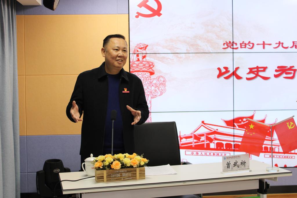 曾武祈從“全會的重大意義”“全會的重大成果”“全會的重大部署”等三個方面對全會精神進行了系統(tǒng)宣講和深刻解讀。如何以史為鑒,開創(chuàng)未來呢?他強調(diào),中國共產(chǎn)黨團結(jié)帶領(lǐng)中國人民又踏上了實現(xiàn)第二個百年奮斗目標新的趕考之路,全校師生要緊跟黨前進的步伐,抓住高等教育發(fā)展的有利時機,積極響應(yīng)健康中國、健康福建,掌握專業(yè)知識與技能,成長為具備終身學(xué)習(xí)能力、批判性思維能力、創(chuàng)新能力的應(yīng)用型醫(yī)學(xué)技術(shù)人才,用硬核本領(lǐng)承擔起時代重任,成為經(jīng)得起人民群眾檢閱的答卷人。