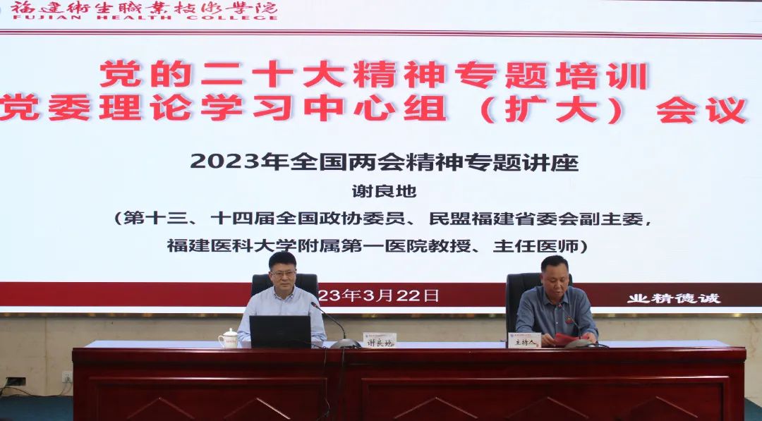 為深入學(xué)習(xí)宣傳貫徹黨的二十大精神,落實(shí)省委關(guān)于實(shí)施“深學(xué)爭優(yōu)、敢為爭先、實(shí)干爭效”行動(dòng)部署,3月22日下午,黨委書記曾武祈主持召開黨委理論學(xué)習(xí)中心組(擴(kuò)大)會(huì)議暨黨的二十大精神專題培訓(xùn)。會(huì)議特別邀請全國政協(xié)委員謝良地來校作2023年全國兩會(huì)精神專題輔導(dǎo)報(bào)告。校領(lǐng)導(dǎo)、中層干部、專職組織員和師生黨支部書記共90余人參加本次會(huì)議。