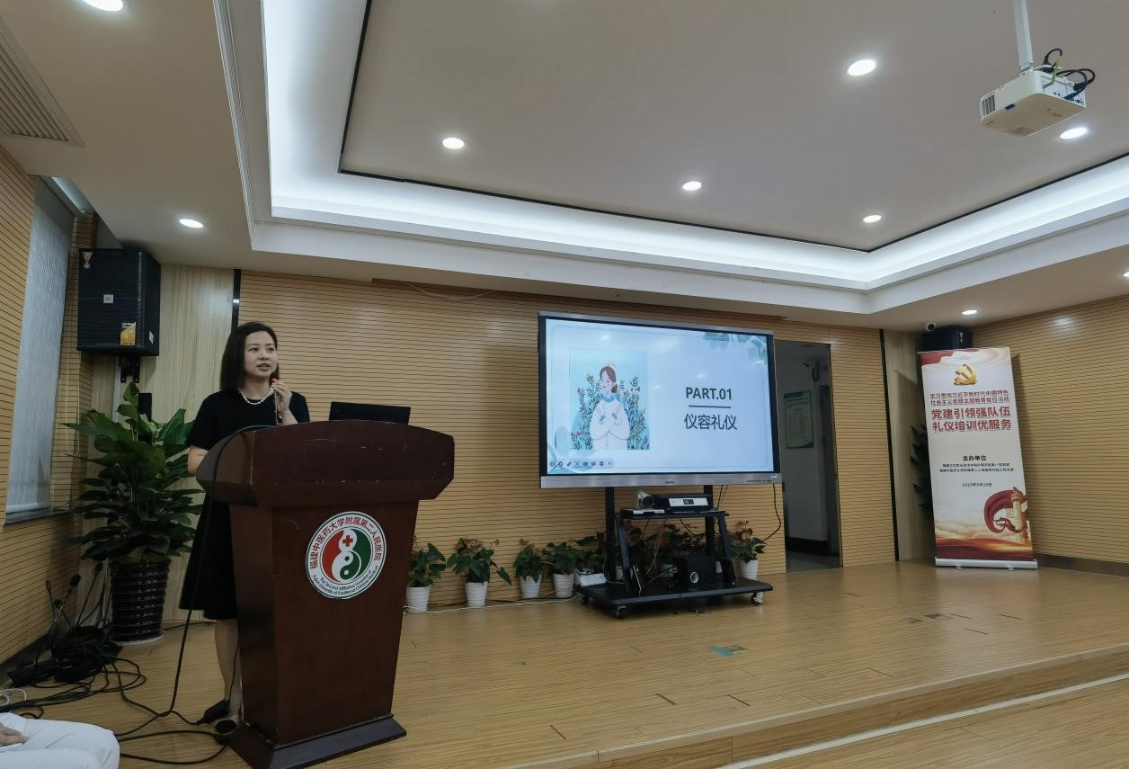 為貫徹落實(shí)黨的二十大精神,深入開展學(xué)習(xí)貫徹習(xí)近平新時代中國特色社會主義思想主題教育,增強(qiáng)黨支部的執(zhí)行力和凝聚力,提升黨建工作的生命力和創(chuàng)造力,持續(xù)推進(jìn)支部建設(shè)與專業(yè)發(fā)展深度融合。2023年5月19日,護(hù)理學(xué)院第一黨支部開展“黨建引領(lǐng)強(qiáng)隊伍 禮儀培訓(xùn)優(yōu)服務(wù)”主題教育黨日活動。護(hù)理學(xué)院第一黨支部黨員教師劉菲菲發(fā)揮專業(yè)特長,為福建中醫(yī)藥大學(xué)附屬第二人民醫(yī)院全體護(hù)士開展護(hù)理禮儀與溝通培訓(xùn)。