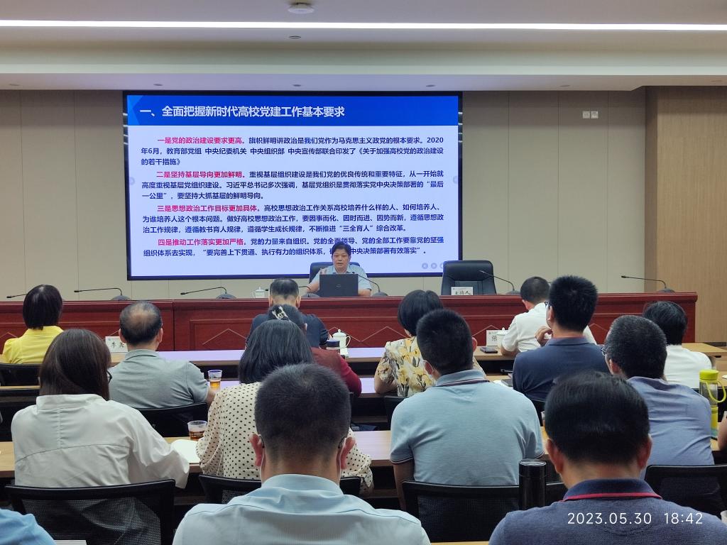 報告會上,陳洪堯解讀了新時代高校黨建的基本要求,從理論和實(shí)踐層面系統(tǒng)分析了高?;鶎狱h組織的建設(shè)目標(biāo)、決策制度和運(yùn)行機(jī)制,并結(jié)合其長期黨建工作實(shí)踐經(jīng)歷,就如何強(qiáng)化政治功能和組織功能,提升黨組織活力,推進(jìn)黨建事業(yè)深度融合提出了創(chuàng)新思路。