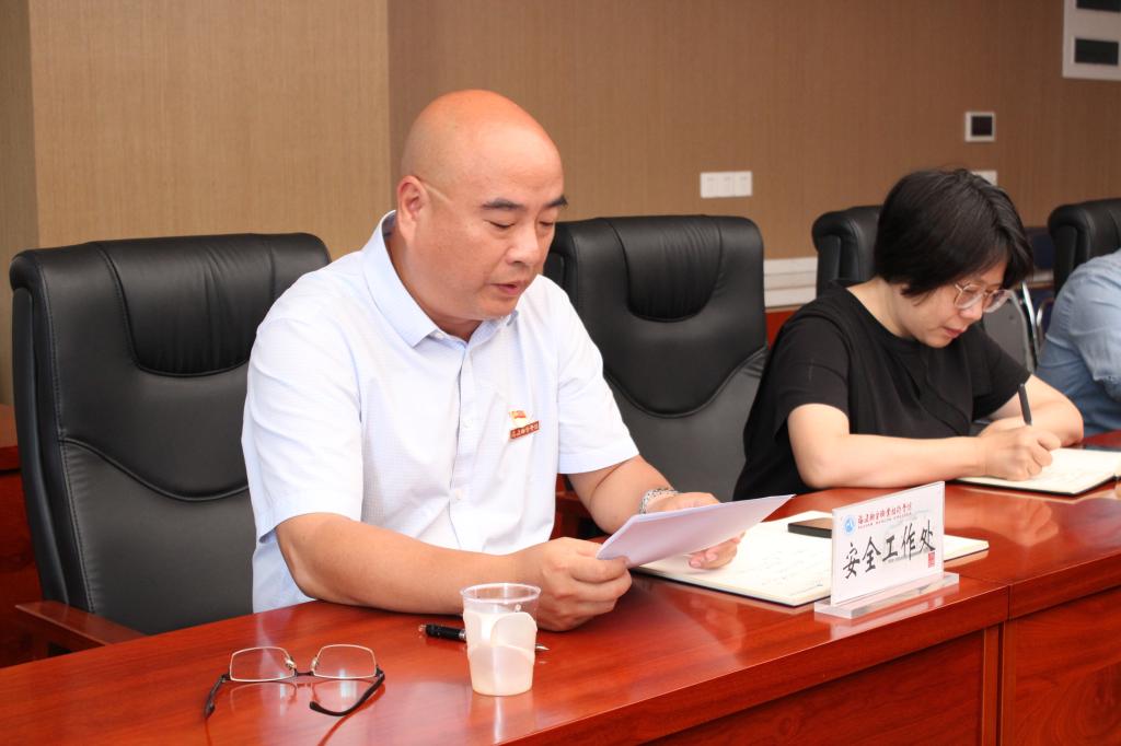 會(huì)上,宣傳部部長(zhǎng)宋維、安全工作處處長(zhǎng)邱滾忠兩位同志圍繞學(xué)習(xí)內(nèi)容依次發(fā)表學(xué)習(xí)心得體會(huì)。宋維認(rèn)為宣傳部要緊緊圍繞學(xué)習(xí)貫徹習(xí)近平文化思想,著力做好意識(shí)形態(tài)、宣傳和特色校園文化建設(shè)三個(gè)方面的工作,持續(xù)加強(qiáng)學(xué)習(xí)、研究,并自覺(jué)貫徹落實(shí)到宣傳思想文化工作各方面和全過(guò)程,不斷開(kāi)創(chuàng)我校宣傳思想文化工作新局面。邱滾忠提出安全工作處將從抓好安全宣傳教育,提升全體師生安全防范意識(shí);夯實(shí)主體責(zé)任,強(qiáng)化責(zé)任擔(dān)當(dāng);完善安全管理工作機(jī)制與應(yīng)急預(yù)案這幾個(gè)方面落實(shí)好教育系統(tǒng)重大事故隱患排查指引文件精神,把學(xué)校安全工作做深、做細(xì)、做實(shí)、做透,織密織牢學(xué)校安全網(wǎng),努力營(yíng)造一個(gè)安全穩(wěn)定的教育環(huán)境。