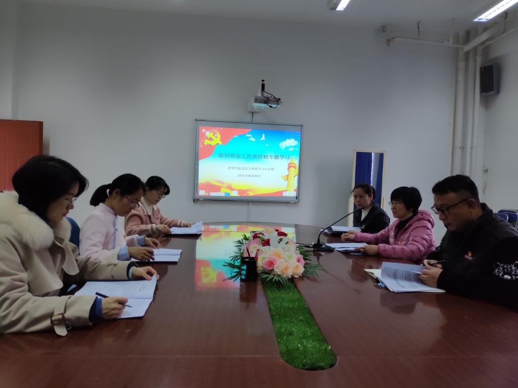 2021年2月2日,為落實(shí)意識(shí)形態(tài)工作責(zé)任,進(jìn)一步推動(dòng)意識(shí)形態(tài)工作扎實(shí)開(kāi)展,護(hù)理學(xué)院黨總支書(shū)記謝濤主持召開(kāi)護(hù)理學(xué)院黨總支中心組意識(shí)形態(tài)工作責(zé)任制專(zhuān)題學(xué)習(xí)會(huì)議,學(xué)習(xí)《福建衛(wèi)生職業(yè)技術(shù)學(xué)院意識(shí)形態(tài)工作責(zé)任制實(shí)施辦法》。