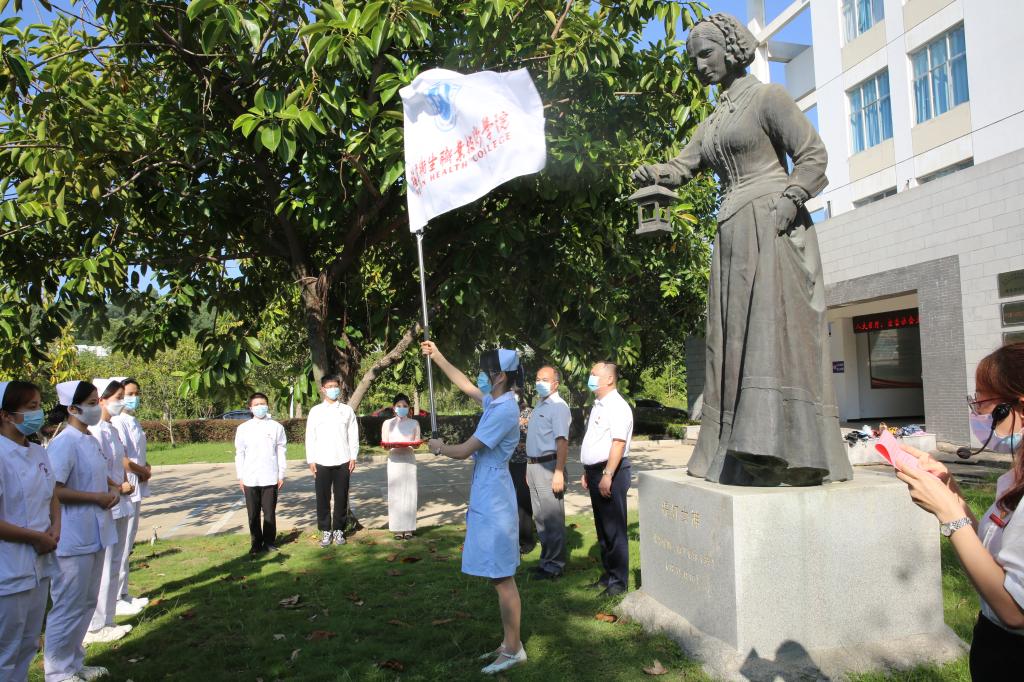 今天上午,我校護理學(xué)院54名師生在校內(nèi)南丁格爾像前舉行出征儀式,他們將支援福州市全員核酸檢測應(yīng)急演練。出征儀式上,學(xué)院黨委書記曾武祈、校長許能鋒分別為出征隊伍授黨旗、校旗。黨委副書記李美華帶領(lǐng)護理學(xué)院班子成員為隊員貼上校標臂章。黨委書記曾武祈寄語隊員:一是茍利國家生死以,豈因禍福避趨之。希望同志們發(fā)揚習(xí)近平總書記“七一”重要講話精神,發(fā)揮強國有我、請黨放心的擔(dān)當(dāng);二是紙上得來終覺淺,絕知此事要躬行。希望同志們保持嚴明的紀律,發(fā)揚優(yōu)良的傳統(tǒng),展現(xiàn)精湛的技術(shù);三是長風(fēng)破浪會有時,直掛云帆濟滄海。祝愿同志們不辱使命,展現(xiàn)青春之風(fēng),圓滿完成任務(wù)。參加出征儀式的還有黨委副書記李美華和護理學(xué)院班子成員。