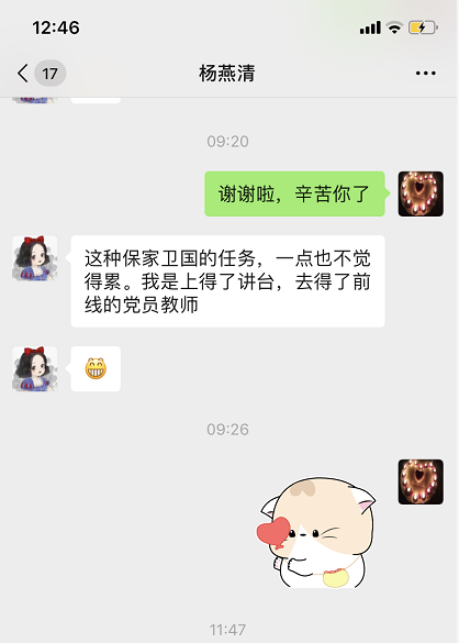一個黨員就是一面旗幟。為更好的完成使命,黨員師生克服困難,走到了培訓(xùn)的第一線?!翱吹轿羧绽锟偸窃谥v臺上教授我們的老師,像個學(xué)生一樣,一遍一遍的向一線醫(yī)生詢問細節(jié),一次一次的反復(fù)訓(xùn)練穿脫防護服,那樣子真的很感人,也很激勵我們。”學(xué)生鄧顯蘭說,“那個時候,我突然憶起了我們的校訓(xùn)‘業(yè)精德誠’。我感謝我有這樣的老師,感謝她們教給我的一切?!?“這種保家衛(wèi)國的任務(wù),一點也不覺得累,我是上得了講臺,去得了前線的黨員教師?!边@是青年黨員教師楊燕清給黨組織的回復(fù),沒有華麗的語言,有的是一名黨員教師的堅定與樸實。
