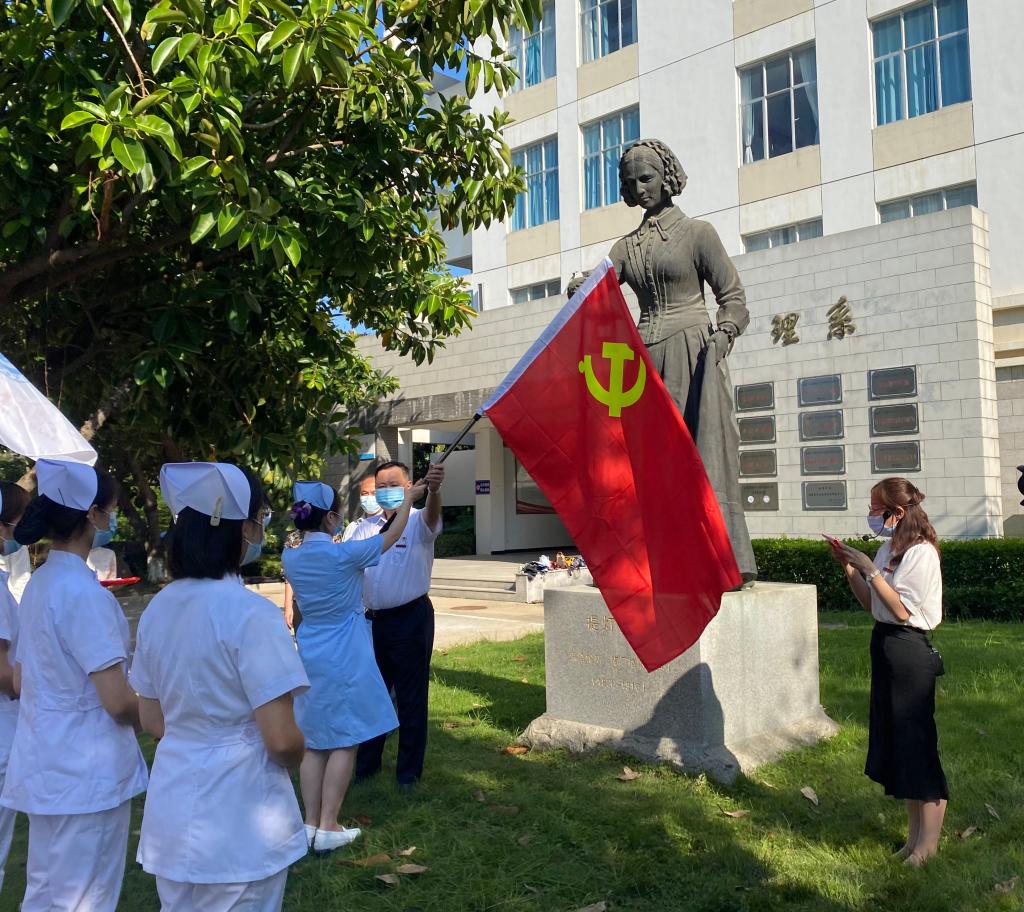 就是這樣一群閩衛(wèi)人,就是這樣一份醫(yī)者心。他們面向黨旗再次莊嚴宣誓“……執(zhí)行黨的決定,嚴守黨的紀律,保守黨的秘密,對黨忠誠,積極工作,……”,他們面向南丁格爾像激情誓師“國家需要,閩衛(wèi)擔(dān)當(dāng),響應(yīng)號召,義(疫)不容辭”!
