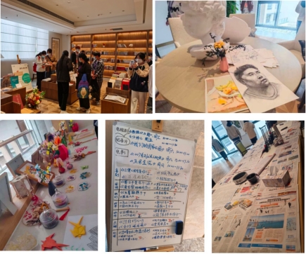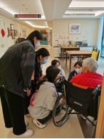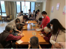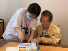 結(jié)束交流后,同學(xué)們在泰康之家工作人員的帶領(lǐng)下,分組進入園區(qū)的護理公寓,在園區(qū)護理師團隊老師的指導(dǎo)下,一同參與到在園區(qū)生活的長者們的文體活動中,與長者們一起完成一個小游戲、一幅畫、一首舞曲,并送上同學(xué)們對長者們的祝福。
