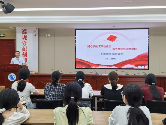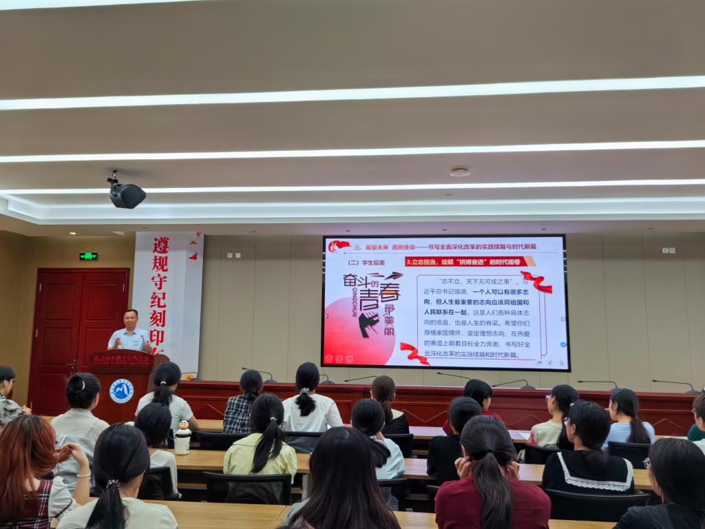 9月12日下午,校黨委書記曾武祈以“同心擘畫改革新藍(lán)圖 攜手奮進(jìn)強(qiáng)國新征程”為題,走進(jìn)24護(hù)理303、304班為我校師生專題宣講黨的二十屆三中全會精神暨秋季開學(xué)第一課。