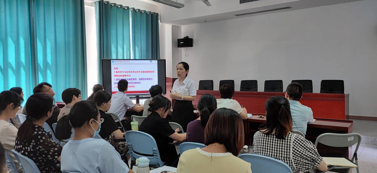 會議組織學(xué)習(xí)了習(xí)近平總書記關(guān)于全面加強(qiáng)黨的紀(jì)律建設(shè)的重要論述,傳達(dá)學(xué)習(xí)了教育系統(tǒng)領(lǐng)域的5名公職人員違紀(jì)違法典型案例,并集中觀看了《利劍出鞘》第二集《嚴(yán)懲教育腐敗 凈化育人生態(tài)》警示教育片和教育部公開曝光的8起違反師德師風(fēng)典型案例。
