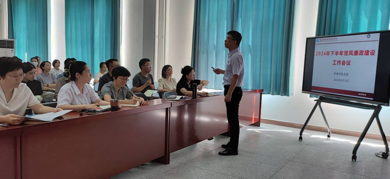 9月19日下午,我院在201會議室召開2024年下半年全面從嚴(yán)治黨暨師德師風(fēng)警示教育工作會議,總結(jié)了學(xué)院2024年以來黨風(fēng)廉政建設(shè)和反腐敗工作,并對下階段工作進(jìn)行部署。校紀(jì)委委員、組織統(tǒng)戰(zhàn)部部長謝濤到會指導(dǎo)。學(xué)院黨委班子成員、全體教職工參加會議。