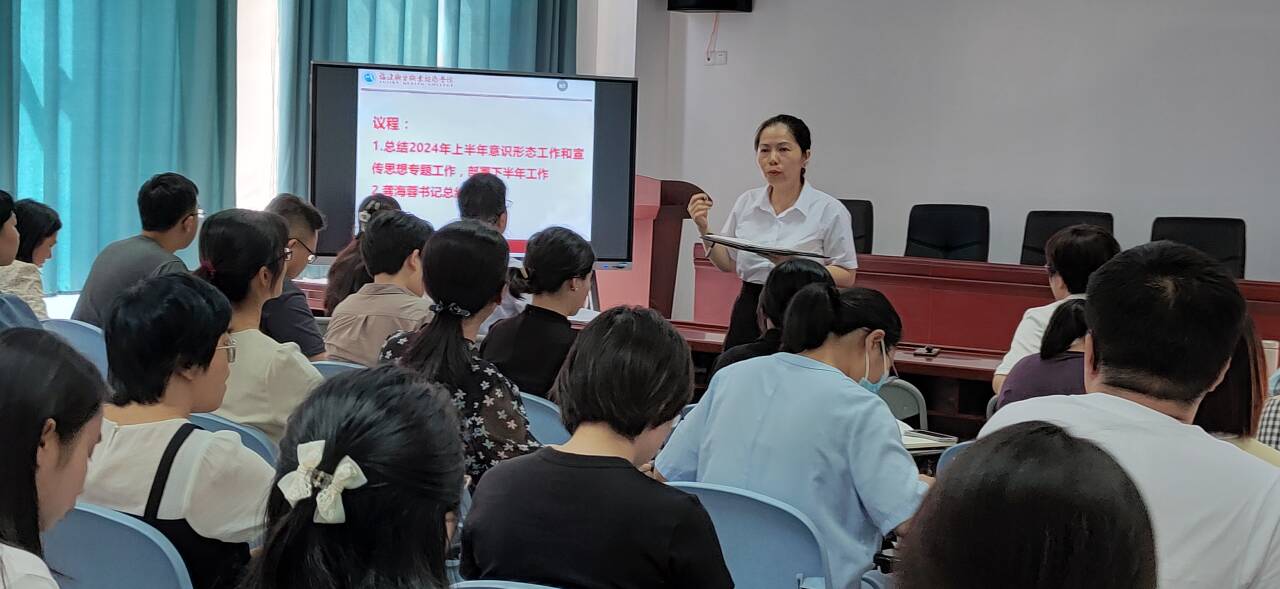 為深入學(xué)習(xí)貫徹習(xí)近平總書記關(guān)于意識(shí)形態(tài)和宣傳思想工作的重要指示,全面落實(shí)學(xué)校黨委有關(guān)意識(shí)形態(tài)和宣傳思想工作的部署要求,9月19日下午,我院在201會(huì)議室召開2024年下半年意識(shí)形態(tài)工作暨宣傳思想工作專題會(huì)議。學(xué)院黨委書記龔海蓉主持并講話,學(xué)院領(lǐng)導(dǎo)班子成員、全體教職工參加會(huì)議。