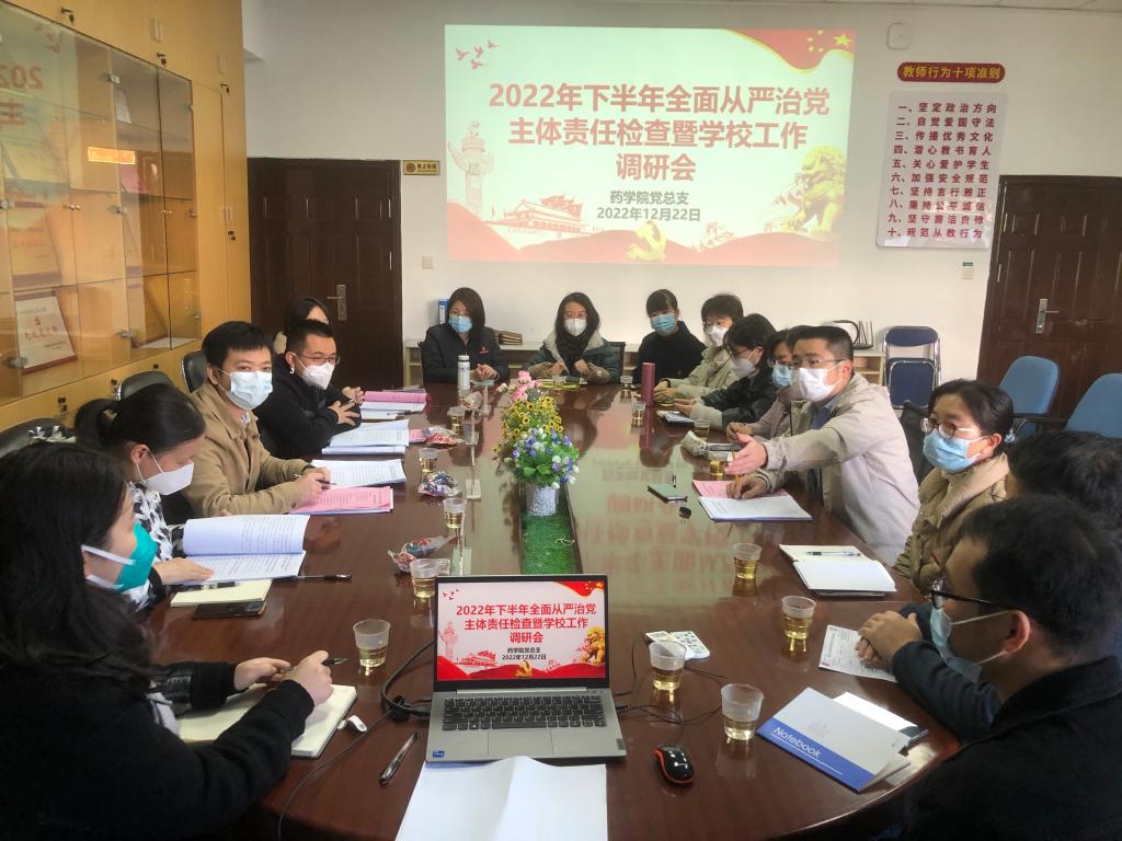2022年12月22日,藥學(xué)院黨總支在會議室召開2022年下半年全面從嚴治黨主體責(zé)任檢查暨學(xué)校工作調(diào)研會。校黨委委員、副校長周雄,校黨委組織統(tǒng)戰(zhàn)部副部長謝宗穎,校黨委宣傳部專技人員曾琳玲,醫(yī)學(xué)院黨總支專職組織員陳恩平一行到場指導(dǎo)。藥學(xué)院黨政領(lǐng)導(dǎo)班子成員、總支支委、各支部書記參加本次會議。