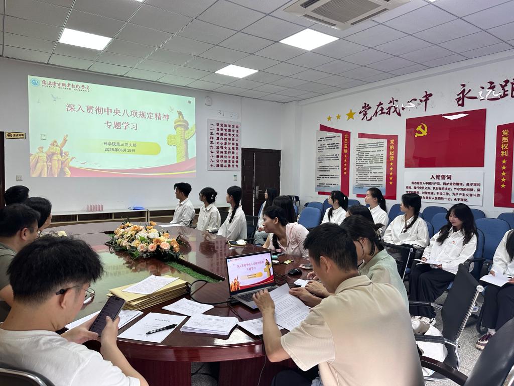 為深入貫徹中央八項(xiàng)規(guī)定精神學(xué)習(xí)教育,進(jìn)一步加強(qiáng)黨支部作風(fēng)建設(shè),提升黨員干部的紀(jì)律意識(shí)和規(guī)矩意識(shí),6月19日,藥學(xué)院第三黨支部組織全體黨員開展深入貫徹中央八項(xiàng)規(guī)定精神學(xué)習(xí)教育第四次專題學(xué)習(xí),重點(diǎn)學(xué)習(xí)了規(guī)定中的第六條 “改進(jìn)新聞報(bào)道”和第七條 “嚴(yán)格文稿發(fā)表” 及相關(guān)實(shí)施細(xì)則的有關(guān)內(nèi)容。