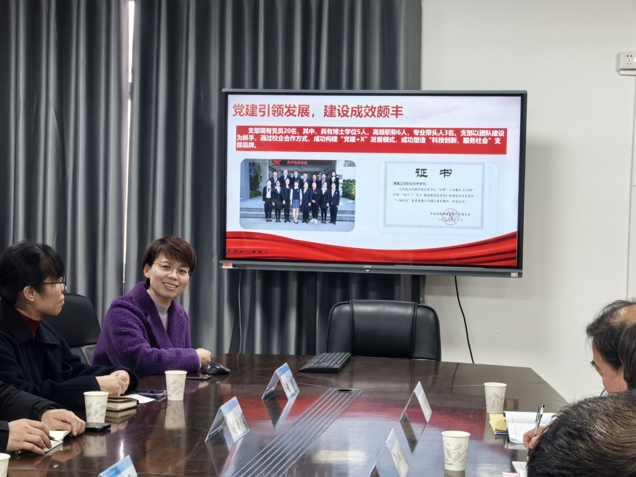 第二黨支部劉丹丹書記詳細(xì)介紹了支部黨建工作推進(jìn)情況、特色舉措以及獲得的各項(xiàng)榮譽(yù),分享了以強(qiáng)化團(tuán)隊(duì)建設(shè)為基石,努力構(gòu)建“黨建+X”創(chuàng)新發(fā)展模式,著力塑造“科技創(chuàng)新,服務(wù)社會(huì)”支部品牌的經(jīng)驗(yàn)做法,闡述了黨建工作在推動(dòng)學(xué)院發(fā)展、促進(jìn)黨建業(yè)務(wù)融合中的關(guān)鍵作用。福建農(nóng)業(yè)職業(yè)技術(shù)學(xué)院經(jīng)濟(jì)管理學(xué)院與會(huì)代表對(duì)支部工作經(jīng)驗(yàn)做法表示高度認(rèn)同。其后,雙方圍繞校企共建、學(xué)生就業(yè)、課程建設(shè)等領(lǐng)域展開熱烈討論,相互學(xué)習(xí)、相互啟發(fā)。