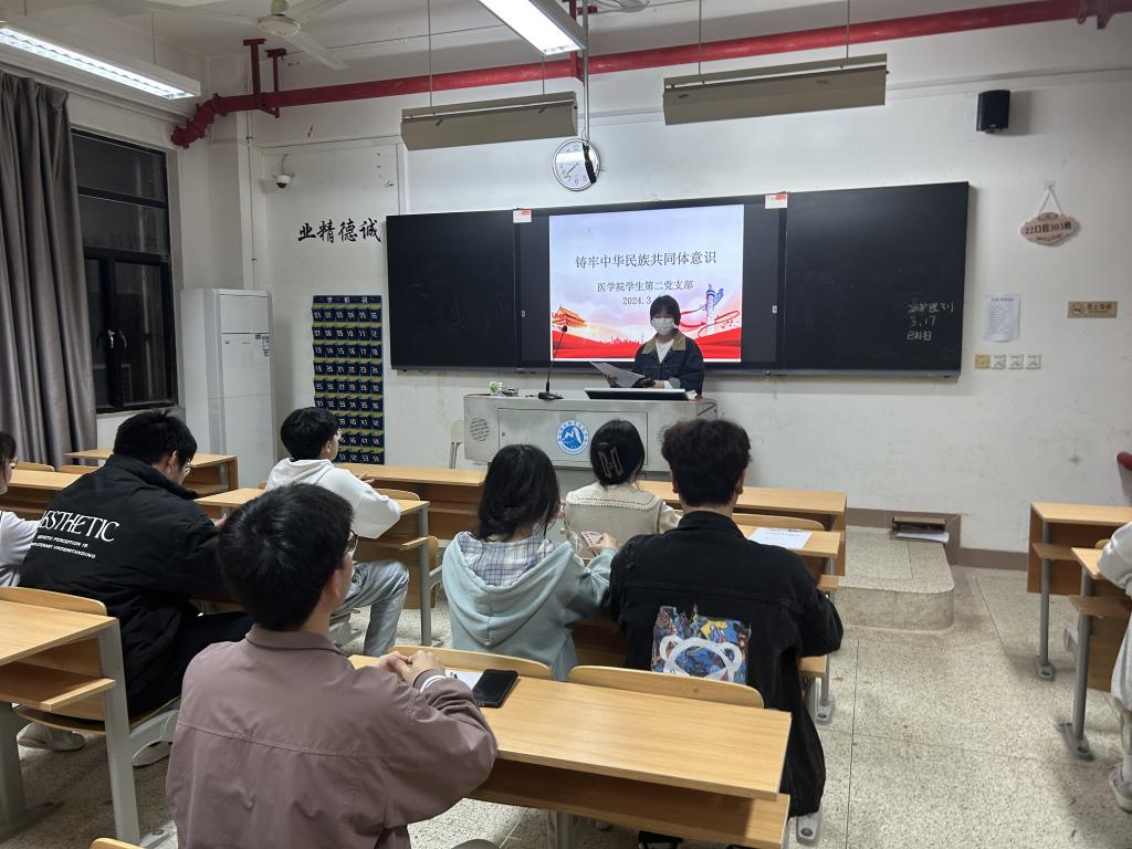 為進(jìn)一步鑄牢中華民族共同體意識(shí),增強(qiáng)黨性修養(yǎng),堅(jiān)定理想信念,醫(yī)學(xué)院學(xué)生第二黨支部于3月17日在教108開展了“鑄牢中華民族共同體意識(shí)”主題活動(dòng),支部黨員教師、入黨積極分子、少數(shù)民族學(xué)生代表參加。