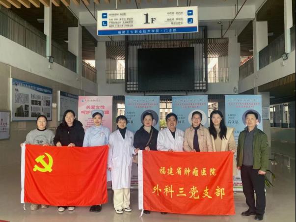 為慶祝第114個(gè)“三八”國際勞動?jì)D女節(jié),3月7日下午,醫(yī)學(xué)院教師第一黨支部與福建省腫瘤醫(yī)院外科第三黨支部共同在學(xué)校門診部組織開展“關(guān)愛女性 健康有我”“三八”國際勞動?jì)D女節(jié)主題黨日活動,期間進(jìn)行了乳腺疾病義診和乳腺健康宣講活動。