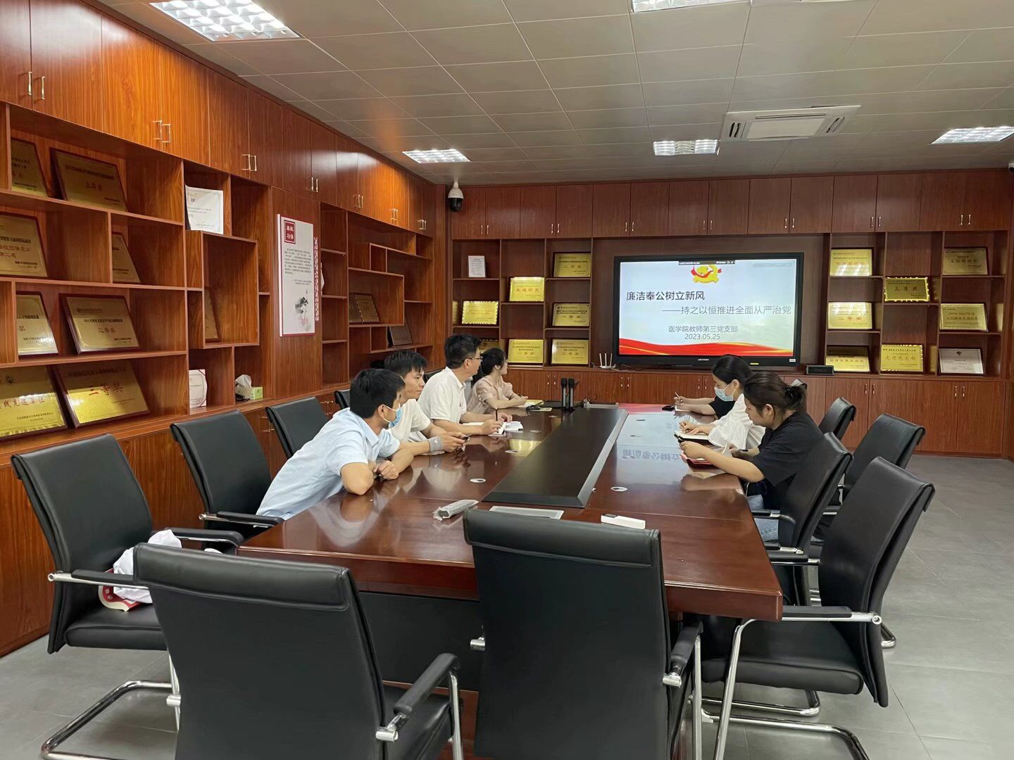 為持續(xù)深入開展黨風(fēng)廉政建設(shè),增強(qiáng)支部黨員廉潔自律意識,2023年5月23日,醫(yī)學(xué)院教師第三黨支部開展專題學(xué)習(xí)活動(dòng),本次專題學(xué)習(xí)圍繞“廉潔奉公樹立新風(fēng)——持之以恒推進(jìn)全面從嚴(yán)治黨”展開,由支部書記陳銘主持。