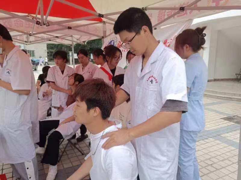 賽后,黨員教師聯(lián)合康健俱樂部成員為運(yùn)動員開展康復(fù)治療。