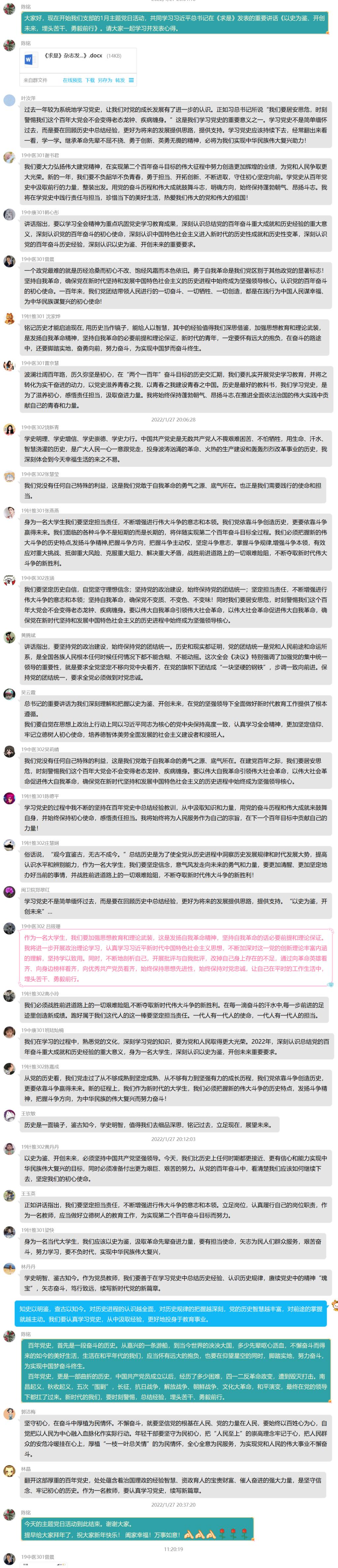 通過學(xué)習(xí),支部全體黨員對(duì)此次講話精神有了更深入地了解,紛紛發(fā)表自己的看法。葉汝萍表示,過去一年較為系統(tǒng)地學(xué)習(xí)黨史,讓我們對(duì)黨的成長(zhǎng)發(fā)展有了進(jìn)一步的認(rèn)識(shí)。正如習(xí)近平總書記所說“我們要居安思危,時(shí)刻警惕我們這個(gè)百年大黨會(huì)不會(huì)變得老態(tài)龍鐘、疾病纏身。”這是我們學(xué)習(xí)黨史的重要意義之一。學(xué)習(xí)黨史不是簡(jiǎn)單緬懷過去,而是要在回顧歷史中總結(jié)經(jīng)驗(yàn),更好為將來的發(fā)展提供思路,提供支持。學(xué)習(xí)黨史應(yīng)該持續(xù)下去,經(jīng)常翻出來看一看,學(xué)一學(xué)。繼承革命先輩不屈不撓、勇于創(chuàng)新、英勇無畏的精神,必將為我們實(shí)現(xiàn)中華民族偉大復(fù)興助力!吳云霞表示,習(xí)近平總書記的重要講話為我們深刻理解和把握以史為鑒、開創(chuàng)未來,在黨的堅(jiān)強(qiáng)領(lǐng)導(dǎo)下全面做好新時(shí)代教育工作提供了根本遵循。我們要自覺在思想上政治上行動(dòng)上同以習(xí)近平同志為核心的黨中央保持高度一致,認(rèn)真學(xué)習(xí)全會(huì)精神,更加堅(jiān)定信仰、牢記立德樹人初心使命,培養(yǎng)德智體美勞全面發(fā)展的社會(huì)主義建設(shè)者和接班人。林丹丹表示,學(xué)史明理、鑒古知今。作為黨員教師,我們要善于在學(xué)習(xí)黨史中總結(jié)歷史經(jīng)驗(yàn)、認(rèn)識(shí)歷史規(guī)律,賡續(xù)黨史中的精神“瑰寶”,矢志奮斗,篤行致遠(yuǎn),續(xù)寫新時(shí)代黨的新篇章。