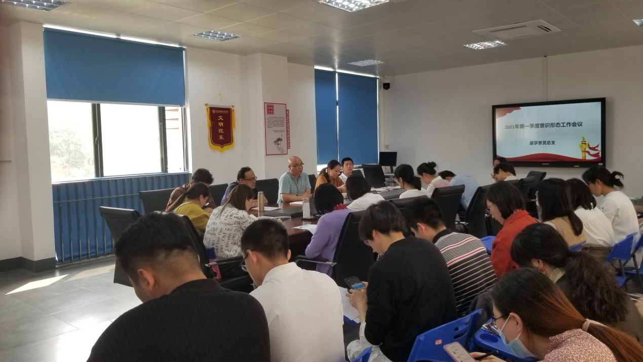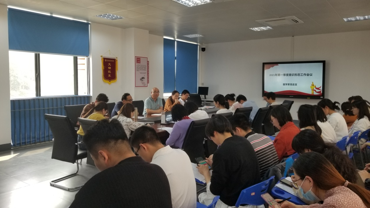 4月1日,醫(yī)學系黨總支在實訓樓311會議室召開2021年第一季度意識形態(tài)工作專題會議。會議由系黨總支書記邱滾忠主持,黨總支各委員、各支部委員、教研室主任和全體輔導員參加了此次會議。
