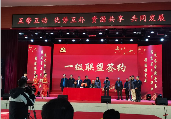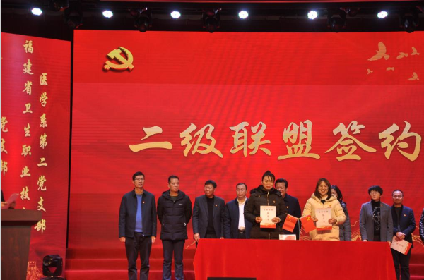 簽約儀式上,我校與荊溪鎮(zhèn)黨委簽訂一級黨建聯(lián)盟協(xié)議,醫(yī)學(xué)系第一、二黨支部分別與閩侯縣荊溪鎮(zhèn)衛(wèi)生院黨支部、亞鷹建筑科技集團(tuán)黨支部簽訂二級黨建聯(lián)盟協(xié)議。