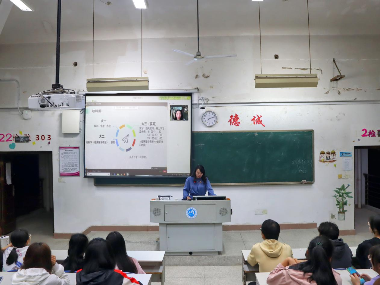 陳詩麥考上了莆田學(xué)院的檢驗專業(yè),她通過網(wǎng)絡(luò)連麥的方式從時間安排、科目安排及心態(tài)調(diào)適三個方面給在場的學(xué)弟學(xué)妹們進行分享。在時間安排上,她建議學(xué)弟學(xué)妹們戰(zhàn)線不要拉太長,不能因為專升本犧牲掉在校的美好時光。大一時要認真上好解剖、生理、思政三門課程,英語基礎(chǔ)差的同學(xué)則要持之以恒地進行英語知識的積累;大二對于臨床醫(yī)學(xué)概論和思政這兩門課要多花心思;大三實習(xí)階段,白天實習(xí),晚上一定要騰出時間復(fù)習(xí),在最后的溫書假沖刺階段,每天至少要保證八個小時的學(xué)習(xí)時間。在復(fù)習(xí)時間安排上,她建議按照考試安排的科目順序,進行上午和下午的復(fù)習(xí),例如大學(xué)英語是在上午考,那么英語的復(fù)習(xí)安排盡量都在上午進行,給大腦養(yǎng)成一種思維習(xí)慣。
