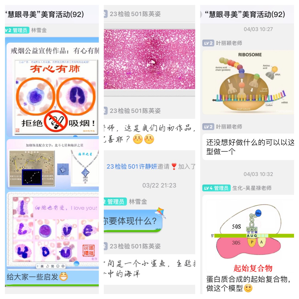 在醫(yī)工學(xué)院師生支部的共同推動下,本次活動共收到52份團(tuán)隊(duì)或個人作品。作品包括繪畫創(chuàng)意類、手工創(chuàng)意類、圖像創(chuàng)意類,每一件作品都是專業(yè)與藝術(shù)的融合體,生動地傳遞著美的認(rèn)知,更透射出創(chuàng)作者對醫(yī)學(xué)檢驗(yàn)技術(shù)專業(yè)知識的認(rèn)識。同學(xué)們紛紛表示通過參與本次活動,他們對專業(yè)知識有了更深入、更全面的理解。