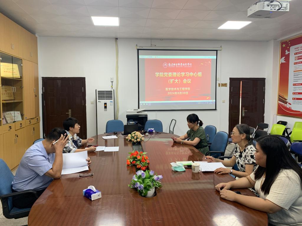 8月30日,醫(yī)學(xué)技術(shù)與工程學(xué)院召開黨委理論學(xué)習(xí)中心組會議,傳達習(xí)近平總書記就中央和國家機關(guān)學(xué)習(xí)貫徹黨的二十屆三中全會精神、推動機關(guān)黨建高質(zhì)量發(fā)展作出的重要指示,跟進學(xué)習(xí)習(xí)近平總書記在紀念鄧小平同志誕辰120周年座談會上、接見巴黎奧運會中國體育代表團時發(fā)表的重要講話精神,深入學(xué)習(xí)習(xí)近平生態(tài)文明思想和“3820”戰(zhàn)略工程思想精髓。學(xué)院黨委書記柯瓊鶯主持會議,學(xué)院院長、黨委委員參加會議。
