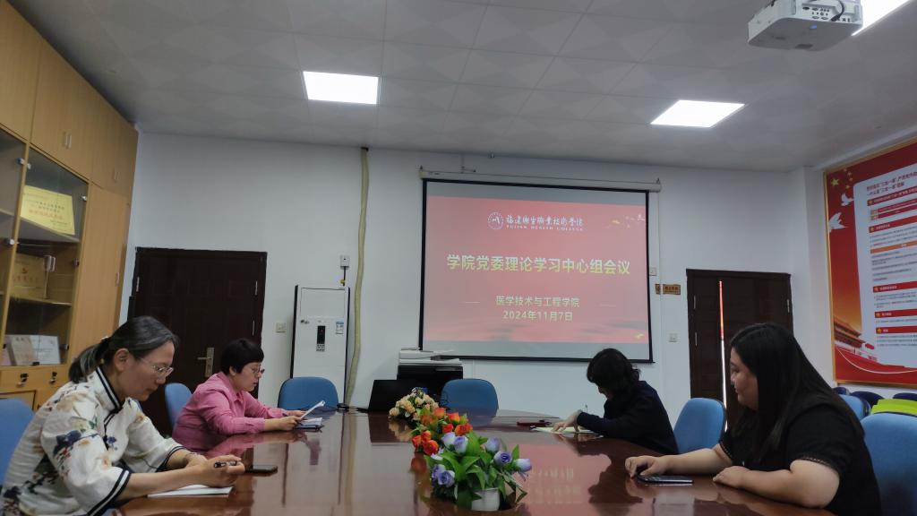 11月7日,醫(yī)學(xué)技術(shù)與工程學(xué)院召開黨委理論學(xué)習中心組會議,學(xué)習習近平總書記在福建考察、在省部級主要領(lǐng)導(dǎo)干部學(xué)習貫徹黨的二十屆三中全會精神專題研討班開班式上發(fā)表的重要講話精神,傳達省委書記周祖翼在全省領(lǐng)導(dǎo)干部大會上的講話精神,組織學(xué)習學(xué)校重要文件。學(xué)院黨委書記柯瓊鶯主持會議,學(xué)院黨委委員參加會議。