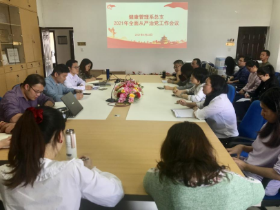 4月22日,健康管理系在系部會(huì)議室召開(kāi)2021年全面從嚴(yán)治黨工作會(huì)議,會(huì)議總結(jié)健康管理系2020年全面從嚴(yán)治黨工作,部署2021年重點(diǎn)工作任務(wù),會(huì)議由健康管理系黨總支書(shū)記黃曦主持。