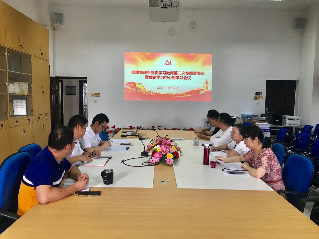 2021年6月29日,健康管理系黨史學(xué)習(xí)教育讀書班第二次學(xué)習(xí)暨中心組學(xué)習(xí)會(huì)在會(huì)議室505召開專題學(xué)習(xí),本次學(xué)習(xí)會(huì)議由健康管理系黨總支書記黃曦主持。