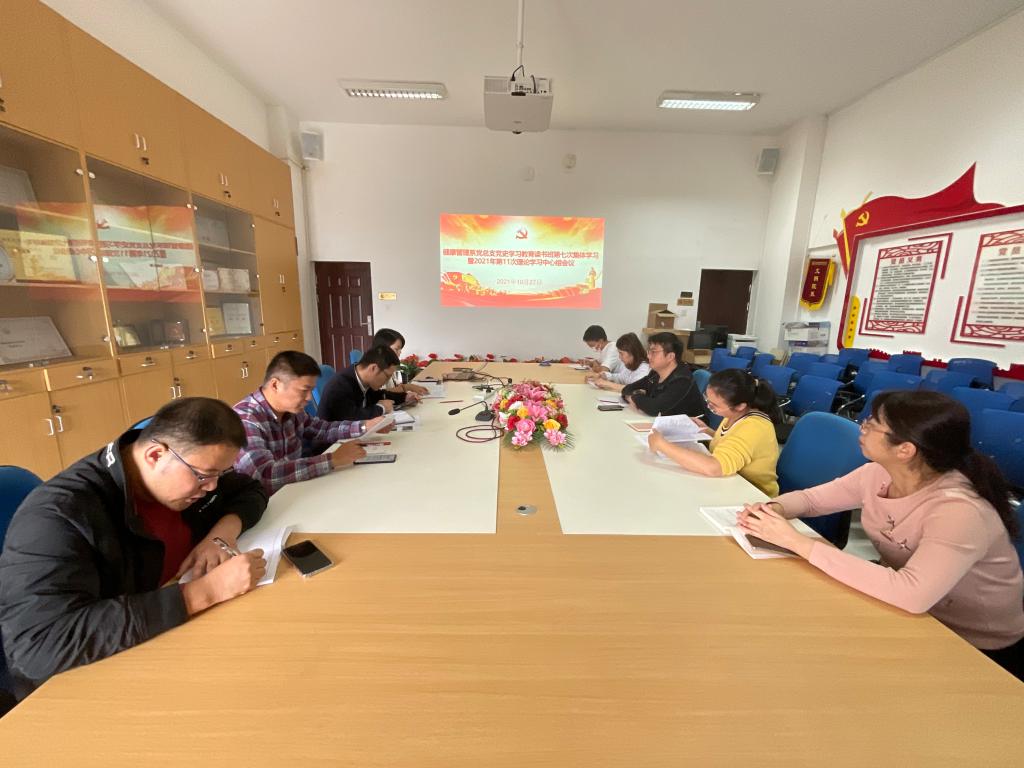 2021年10月27日,健康管理系黨史學(xué)習(xí)教育讀書班第七次學(xué)習(xí)暨中心組學(xué)習(xí)會在系部會議室召開專題學(xué)習(xí),本次學(xué)習(xí)會議由健康管理系黨總支書記黃曦主持。