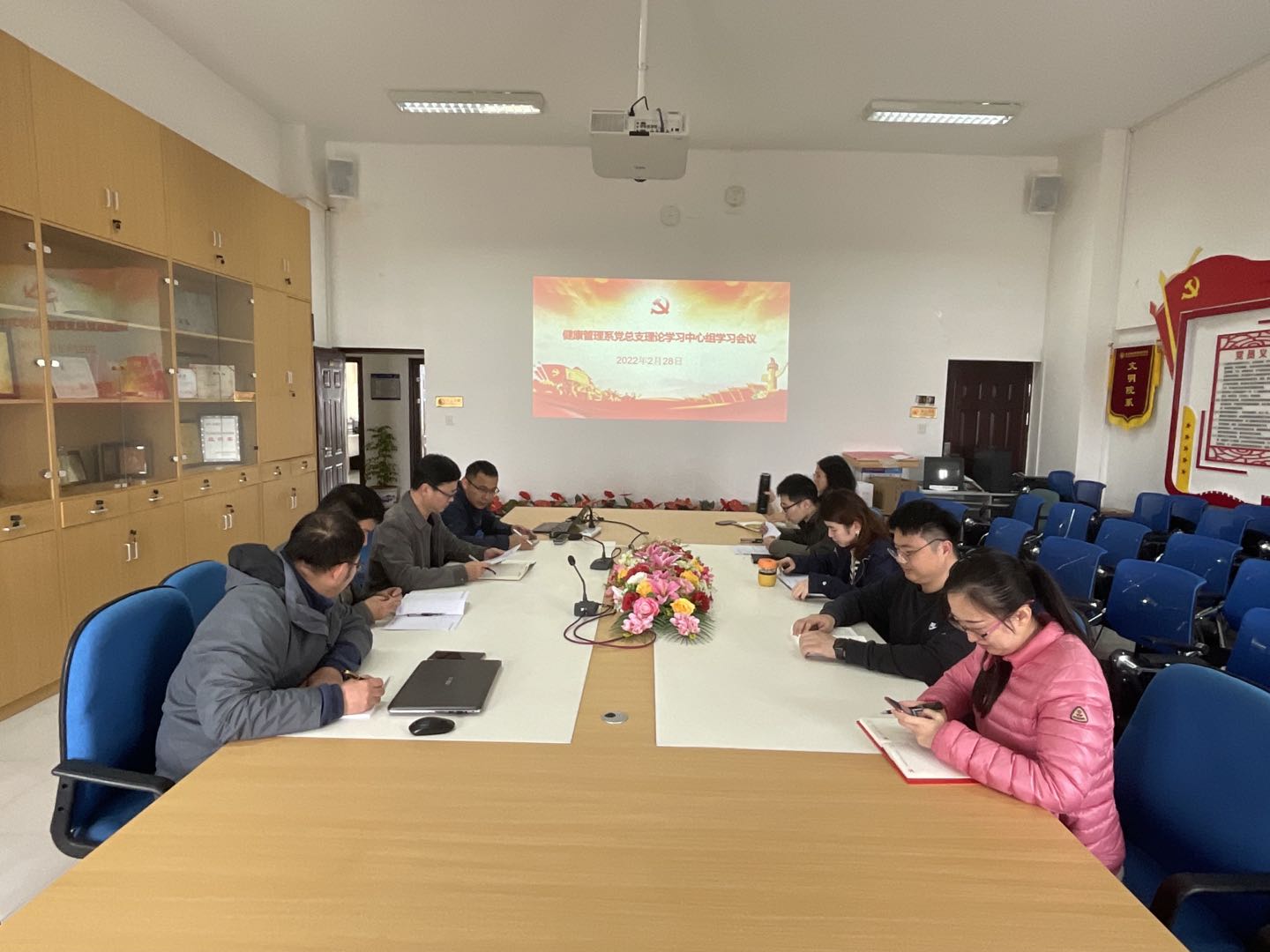 2022年2月28日上午,在系部會議室召開健康管理系黨總支2022年第2次理論學習中心組會議,本次會議由健康管理系黨總支書記葉海主持。