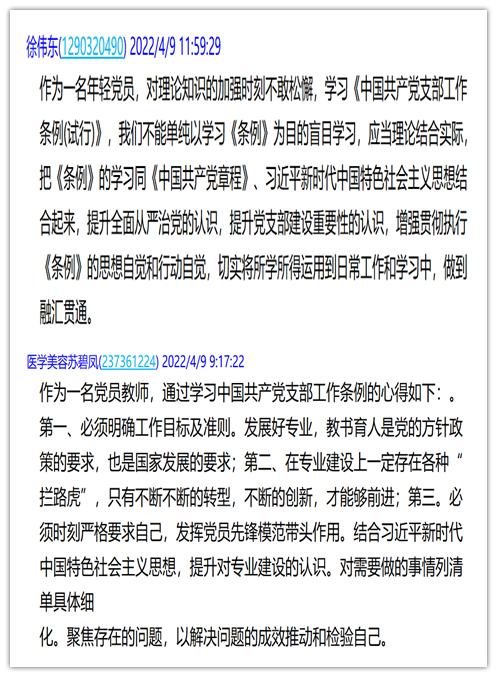 2022年4月9日,健康管理系黨總支第一支部全體黨員學習《中國共產黨支部工作條例(試行)》。