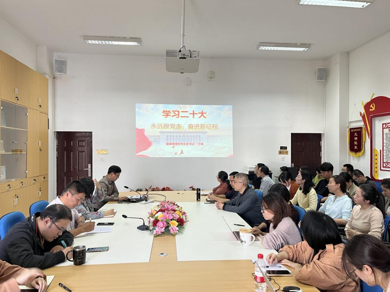 10月29日,健康管理系黨總支2022年第11次理論學(xué)習(xí)中心組會議在系部會議室召開,專題學(xué)習(xí)黨的二十大精神。