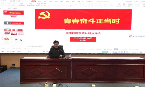 3月16日,健康管理系業(yè)余分黨校第九期培訓班暨青馬工程培訓班第七課在實訓樓四樓報告廳舉行,健康管理系黨總支書記葉海以“青春奮斗正當時”為主題,為青年學子們帶來了一場精彩黨課。