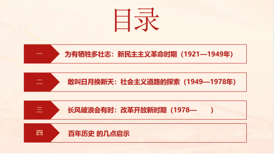 課上,孔祥榮分別從新民主主義革命時期、社會主義道路的探索、改革開放新時期、百年歷史的幾點啟示講解了,一百年來,中國共產(chǎn)黨為爭取民族獨立、人民解放和實現(xiàn)國家富強、人民幸福而不懈奮斗。中國共產(chǎn)黨始終代表最廣大人民的根本利益,實現(xiàn)好、維護好、發(fā)展好最廣大人民的根本利益,把人民對美好生活的向往作為我們的奮斗目標(biāo),讓廣大人民共享改革發(fā)展的成果,在兌現(xiàn)了全面建成小康社會的鄭重承諾以后,又開啟了全面建設(shè)社會主義現(xiàn)代化國家新征程,積極推動共同富裕有實質(zhì)性進展。強調(diào),當(dāng)代青年有幸見證黨的百年華誕,生逢盛世,亦當(dāng)不負盛世,要以昂揚姿態(tài)把青春理想投入國家與民族的偉大事業(yè)中,把青春力量凝聚到時代夢想和美好前程中,以奮斗之青春不負黨和人民的厚望,書寫人生的繁花似錦