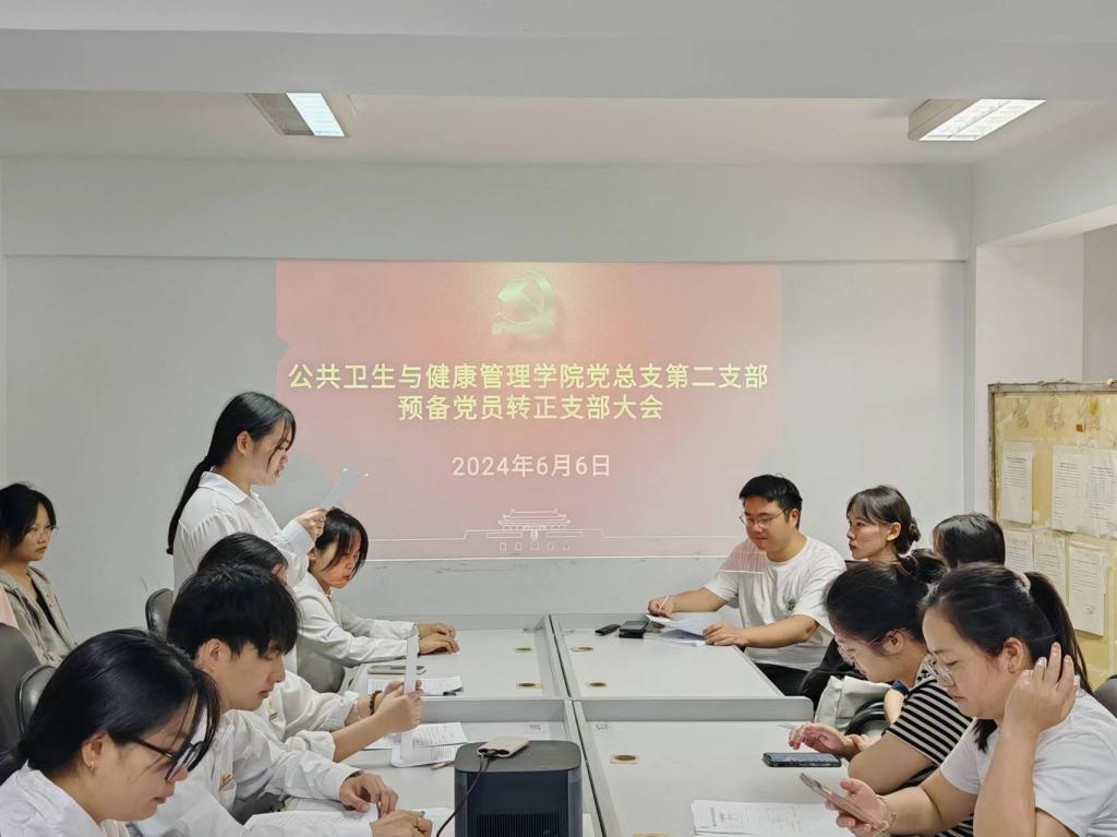 6月6日,公共衛(wèi)生與健康管理學院黨總支第二支部在學院會議室隆重召開了預備黨員轉正大會,會議主要討論并審議了張藝銘7名預備黨員轉為正式黨員的申請。會議由黨支部書記張凱捷同志主持,支部全體黨員參加了此次大會。