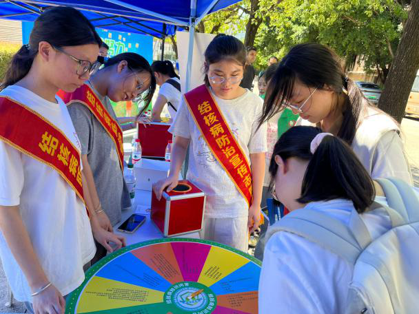 為鞏固同學(xué)們對結(jié)核病防治核心知識的掌握,并提升他們對結(jié)核病的關(guān)注與重視,健康學(xué)院的預(yù)防醫(yī)學(xué)專業(yè)教師指導(dǎo)同學(xué)們開展了一系列專業(yè)實踐活動。通過設(shè)置結(jié)核病大轉(zhuǎn)盤游戲、將結(jié)核病知識整理成卡片以及設(shè)置結(jié)核病留言板等趣味活動,增加了互動性和趣味性。在面對同學(xué)們回答錯誤或不理解的問題時,結(jié)核病志愿者進(jìn)行針對性的講解,有效促進(jìn)了大家對結(jié)核病知識的理解,極大地喚起了同學(xué)們對結(jié)核病的重視。