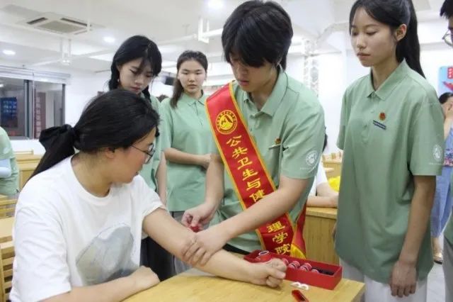 為更直接地服務(wù)社區(qū)居民,活動還設(shè)置了義診環(huán)節(jié),免費為社區(qū)居民測量血壓,提供基礎(chǔ)的健康評估及艾灸等健康咨詢服務(wù)。此外,實踐隊分發(fā)日常健康小藥箱,內(nèi)含風(fēng)油精、清涼油、萬金油、抑菌液、西瓜霜潤喉片和藿香正氣軟膠囊等常用藥品,以備不時之需,讓社區(qū)居民感受到實實在在的關(guān)懷與溫暖。