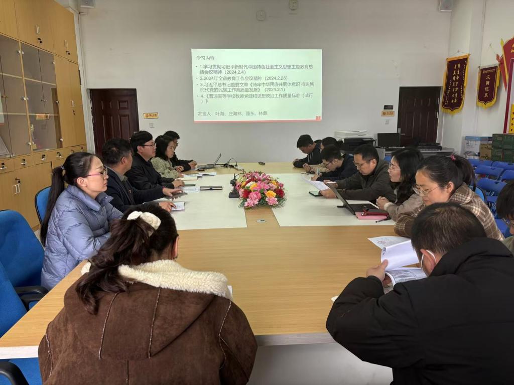2024年2月28日,學(xué)院理論學(xué)習(xí)中心組在505會(huì)議室舉行了2024年度第二次集體學(xué)習(xí)會(huì)。重點(diǎn)學(xué)習(xí)了以下幾項(xiàng)重要精神和內(nèi)容,2024年全省教育工作會(huì)議精神、學(xué)習(xí)貫徹習(xí)近平新時(shí)代中國特色社會(huì)主義思想主題教育總結(jié)會(huì)議精神、習(xí)近平總書記在二十屆中央紀(jì)委三次全會(huì)上的重要講話精神、《習(xí)近平關(guān)于全面依法治國論述摘編》。