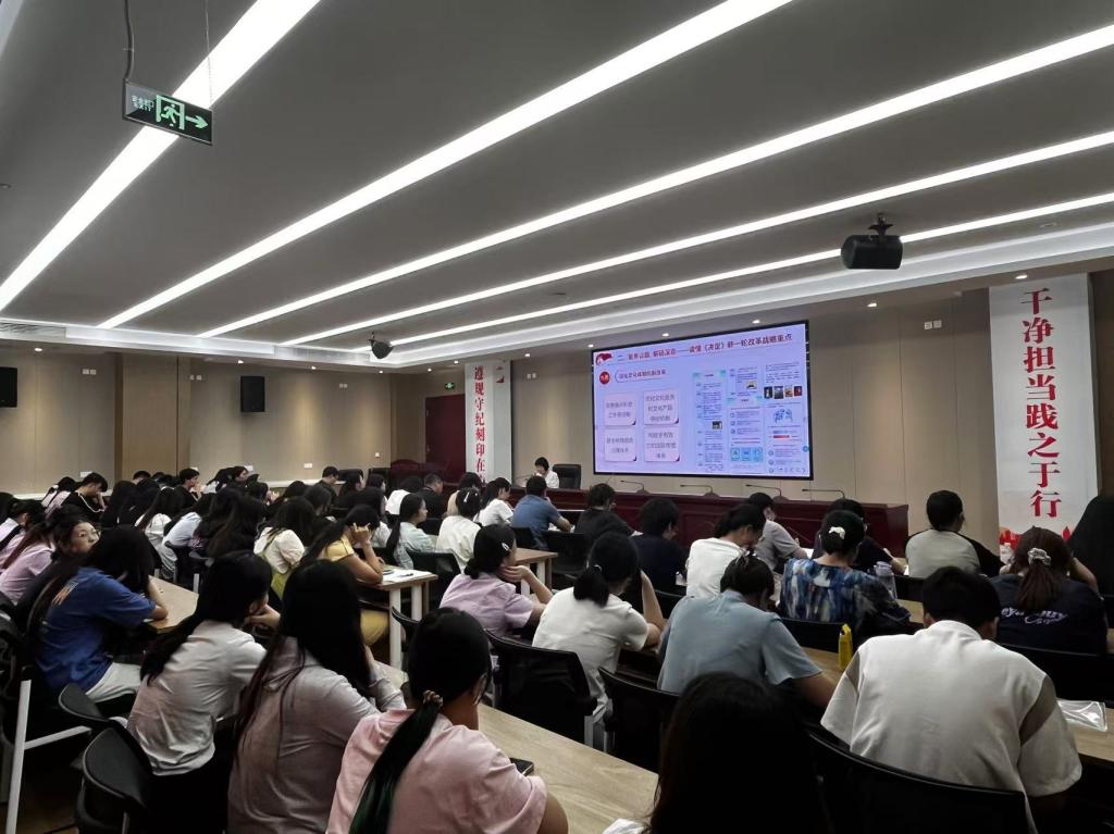 最后通過“展望未來 勇?lián)姑獣鴮懭嫔罨母锏膶嵺`續(xù)篇與時代新篇”激勵師生在新時代新征程上砥礪奮進,奮勇向前。強調(diào),黨的二十屆三中全會精神是一座理論“富礦”,全校師生要持續(xù)發(fā)力、久久為功,在深化內(nèi)化轉(zhuǎn)化上下功夫,爭做黨的二十屆三中全會精神的踐行者。希望,師生們要與時代同頻共振,與國家發(fā)展同向同行,把個人成長自覺融入國家發(fā)展大局,為實現(xiàn)中華民族偉大復(fù)興的中國夢貢獻青春力量。