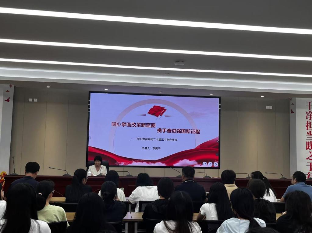 9月12日,校黨委副書記李美華在行政樓6樓會議室為健康學(xué)院師生宣講黨的二十屆三中全會精神,學(xué)院黨政班子成員、師生黨員、學(xué)生代表等共100余人現(xiàn)場聆聽。