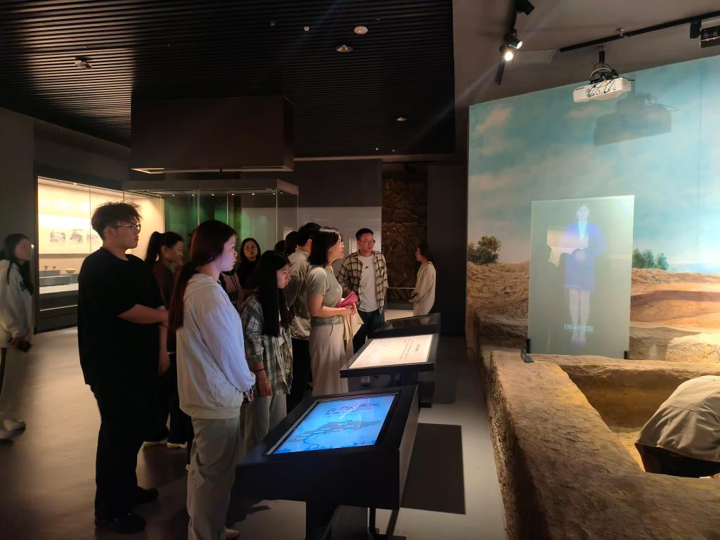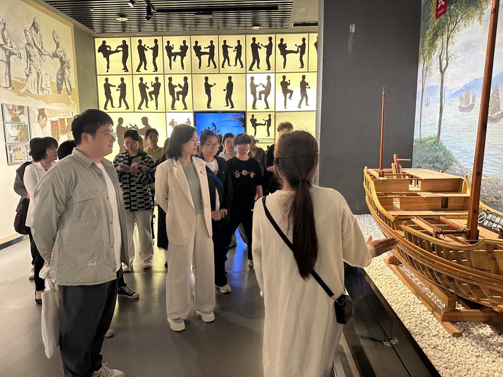 在閩侯縣博物館,在講解員的帶領下,師生們先后參觀“薪火相傳、置縣建治”“三邑同城、千載共榮”“風云際會、前仆后繼”三個單元陳列布展點,師生們深刻感受了八閩首邑閩侯縣深厚的歷史積淀和濃厚的文化底蘊,借助影像、圖文、藏品、雕塑等展示,感嘆于閩侯文化的源遠流長。在數(shù)字化技術手段加持下,身臨其境地體驗了閩劇表演和詠春拳體感互動項目。在“八姓入閩”裸眼3D沉浸室,全息投影的立體化場景再現(xiàn)了“八姓入閩”的歷史。