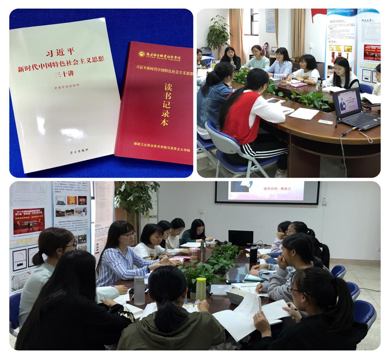 社團(tuán)育人。支部黨員教師長期指導(dǎo)6個學(xué)生社團(tuán),2018年成功立項省級社團(tuán)——福建衛(wèi)生職業(yè)技術(shù)學(xué)院習(xí)近平新時代中國特色社會主義思想讀書社,常態(tài)化開展對《習(xí)近平新時代中國特色社會主義思想三十講》、《習(xí)近平用典》、《習(xí)近平講故事》、《擺脫貧困》、《習(xí)近平的七年知青歲月》等書籍的系統(tǒng)學(xué)習(xí)。通過專題報告、讀書分享、社會實踐等多種形式開展新思想宣講120多場,大力推進(jìn)新思想和黨的十九大精神的入耳入腦入心。
