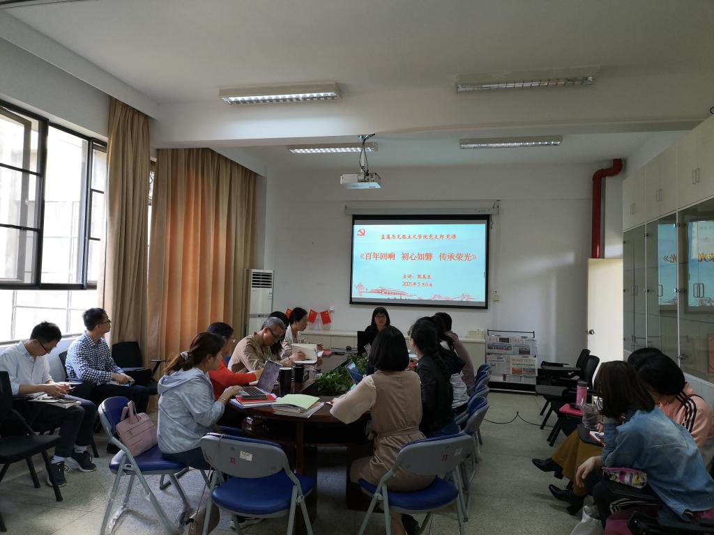2021年5月6日上午,直屬馬克思主義學(xué)院黨支部書(shū)記熊美蘭以《百年回響 初心如磐 傳承榮光》為題,為支部全體黨員作了黨史學(xué)習(xí)教育專(zhuān)題黨課報(bào)告。