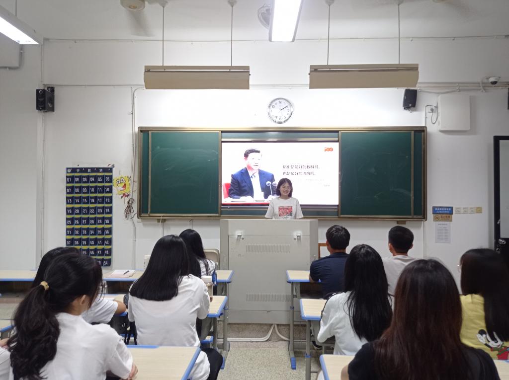最后,在“繼往開來”中,羅蕓老師與大家一同溫情回顧了入黨、入團(tuán)的初心,她以梁?jiǎn)⒊摹渡倌曛袊f》勉勵(lì)大家,“故今日之責(zé)任,不在他人,而全在我少年?!苯袢罩袊嗄甏笥锌蔀?,青年要從黨史中汲取精神力量,賡續(xù)英雄精神,繼往開來,敢于擔(dān)當(dāng)。